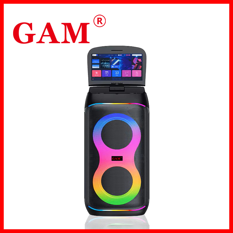All-in-one Double 6.5 inch Woofer Smart Video Touch Screen Portable Karaoke Speaker With 2 Microphones Lyrics Display Screen for Party
