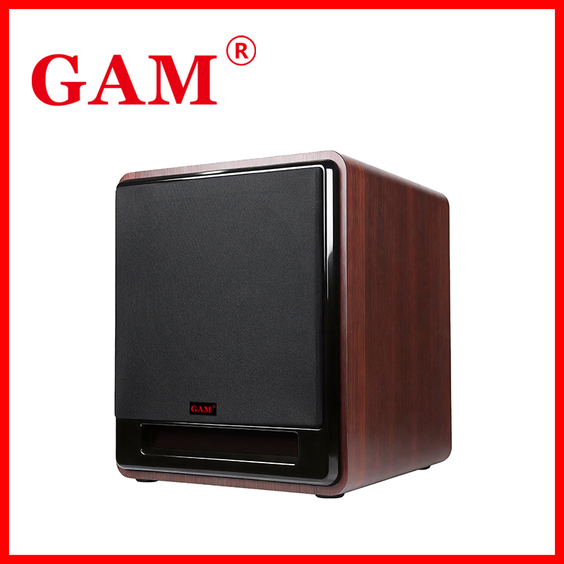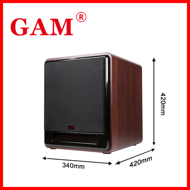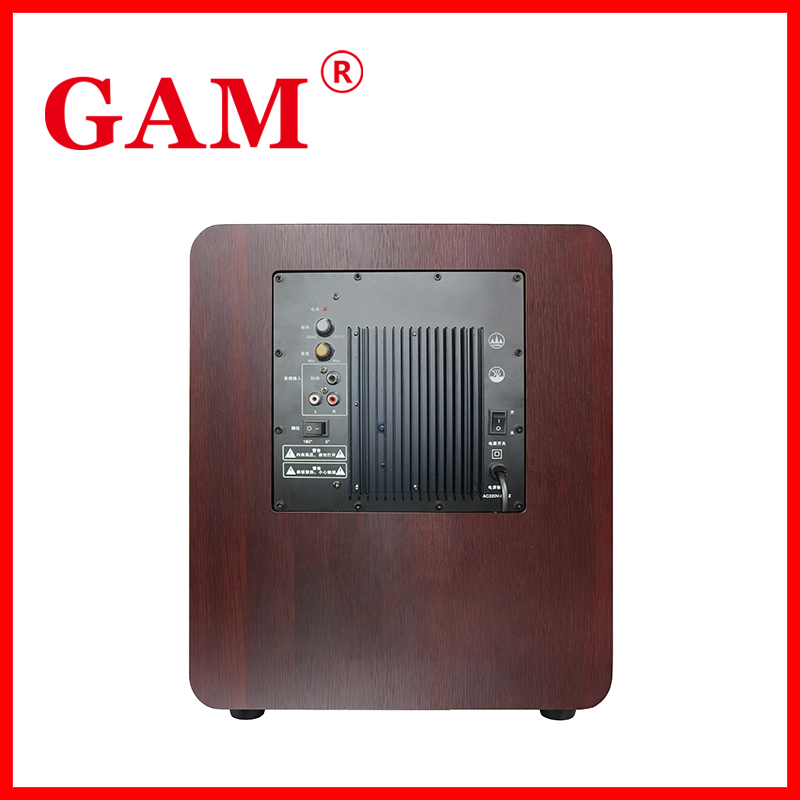 GAM High Power 150W HSD-V10 active subwoofer features an 10-inch driver, 4Ω impedance, and a frequency response of 35Hz-180Hz, delivering deep bass with <0.1% THD. It supports AC110-240V voltage, ensuring global compatibility.