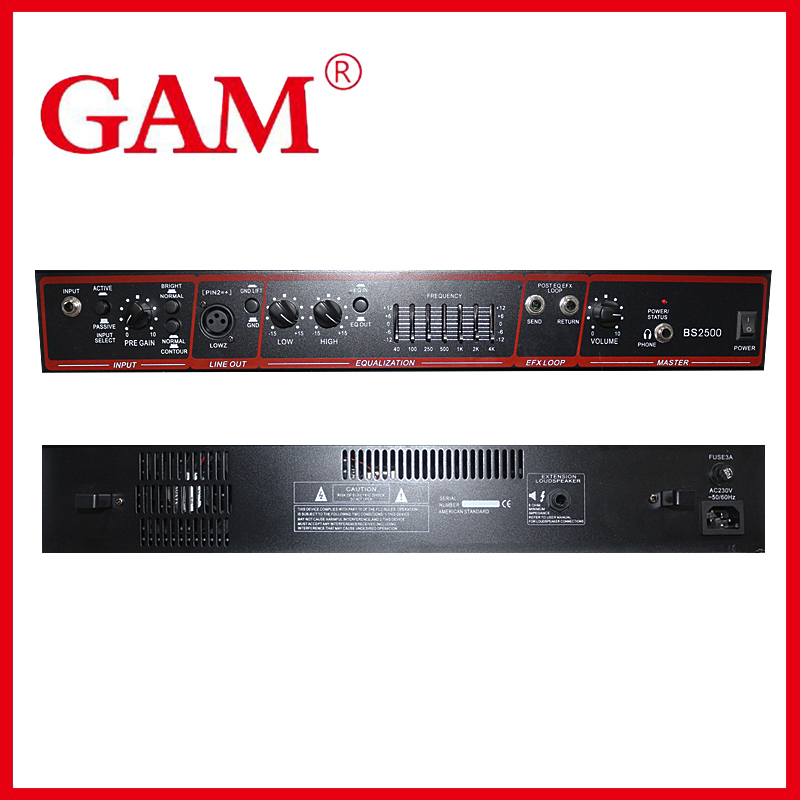 Input Adjustment | Active/Passive Input select switch Pre Grain Volume control Bright Switch Contour switch Input Jack | |