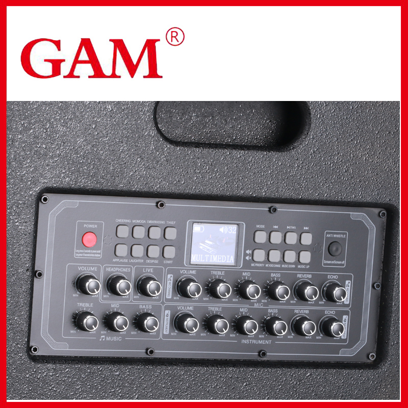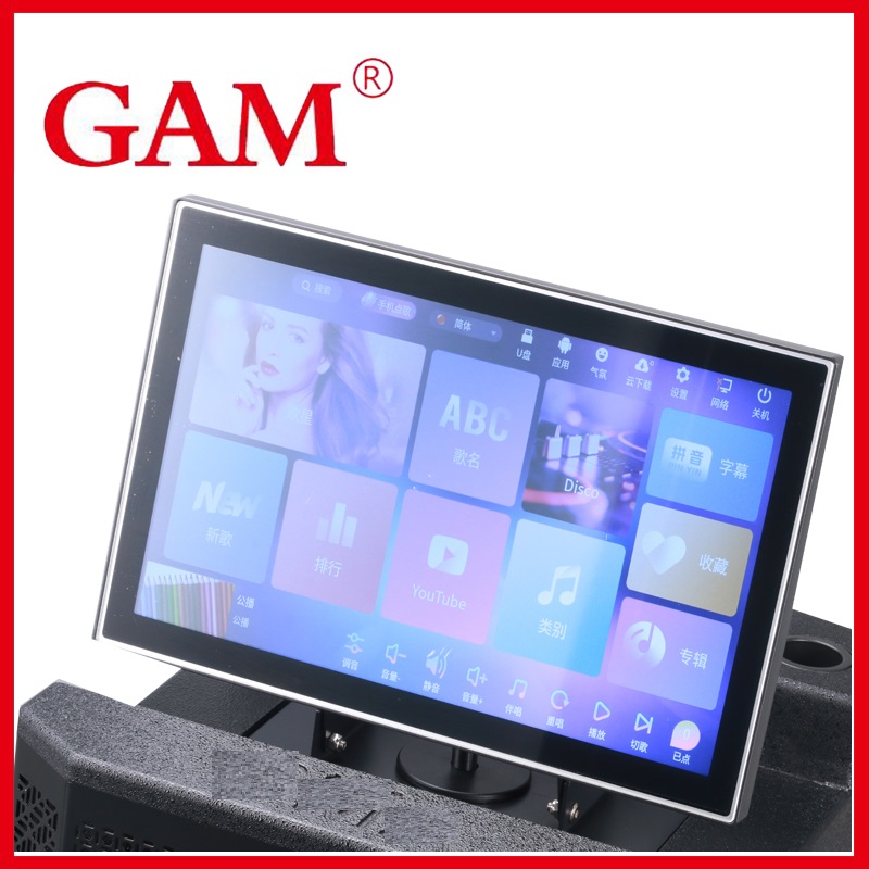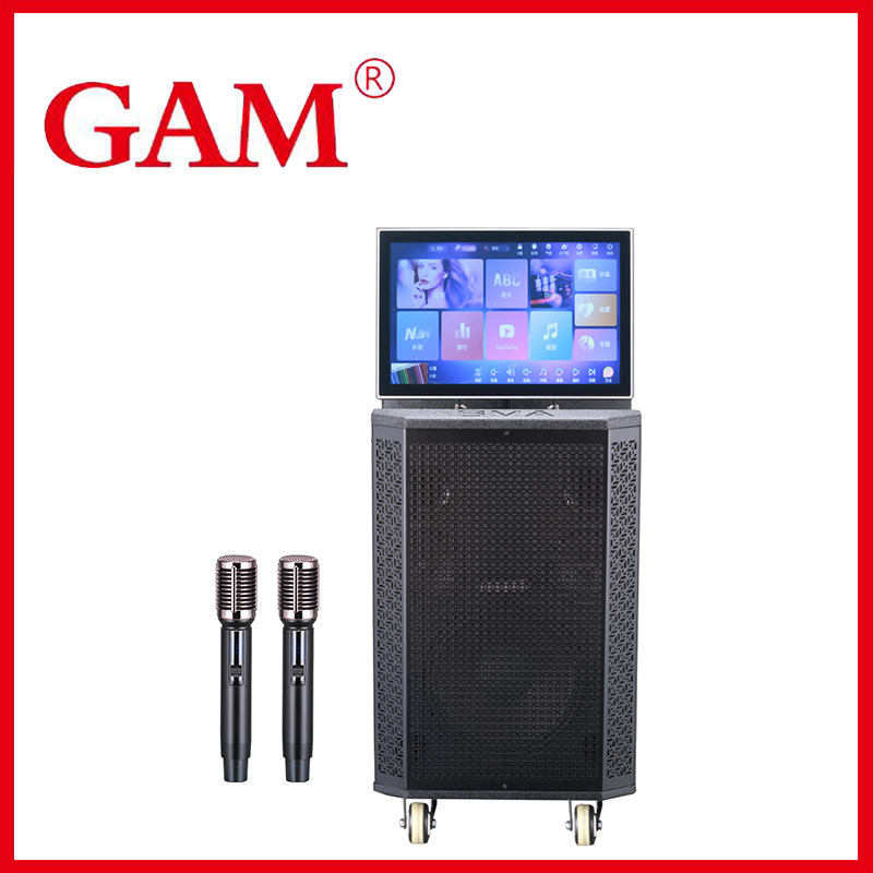 1.Speaker: 10”Woofer x 1 + Midrange speaker 4”x2 + Tweeter Neodymium 3”x2 - Frequency: 40Hz-18KHz - Impedance: 4Ω - Sensitivity: 96dB - Output power: 300W RMS - Screen size: 360-degree rotating tempered glass screen, 15.4 inches in size, HD resolution (1280x720)/60Hz