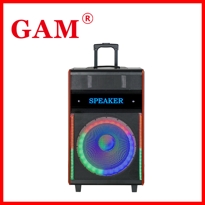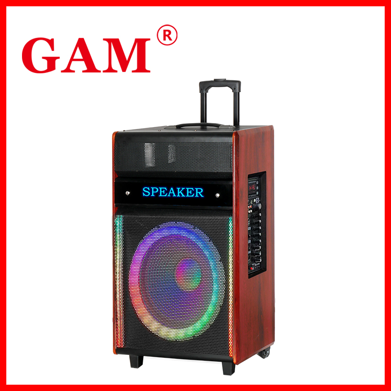 15inch Wooden Trolley Speaker Built-in 12V9A lead-acid battery With VHF Wireless Microphone USB/TF/Bluetooth /FM/TWS/Microphone priority