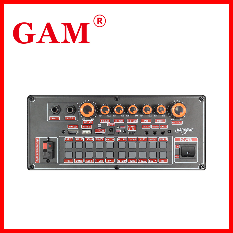 Function | 9 knobs + RGB light+19“ touch screen( 360-degree rotatable hydraulic) -DSP,Wi-Fi, Bluetooth, USB,TF,OTG,HDMI,3.5mm AUX in/out,DC12V input, MIC input/3-way Speaker system -System:Andriod 12 -RAM/ROM: 2G+32G MIC input x2 | |